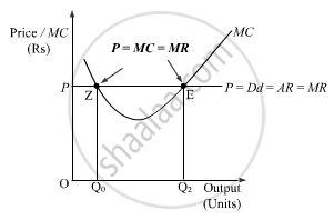 In the above figure, the MC curve cuts the price line (or MR) at two different points i.e. at ‘Z’ and ‘E’. The first order condition of profit maximization (necessary condition), i.e. MR = MC is fulfilled at both of these points. However, at point ‘Z’, MC is falling and is negatively sloped. At this point, for any output level slightly more than the OQ0, the firm is facing price that exceeds its MC. This implies that the profit can be maximised by increasing output level beyond OQ0. Therefore, OQ0 is not a profit maximisation output.