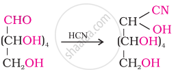 The reaction of glucose with hydrogen cyanide: