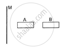 A large non-conducting sheet M is given a uniform charge density. Two uncharged small metal rods A and B are placed near the sheet as shown in the following figure.