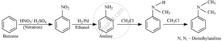 How will you convert Benzene into N, N-dimethylaniline?