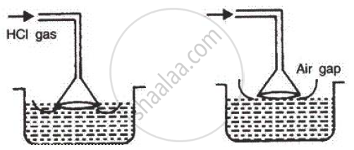 An inverted funnel connected to the HCI gas supply is placed in a beaker in such a way that the rim of the funnel just touches the surface of water in the beaker. HCI gas coming through the delivery tube fills the mouth of the funnel and then dissolves in water. Hence, a low pressure is created and back suction occurs. As a result of it, water level rises in funnel and level of water in the beaker is lowered. Thus, the rim of the funnel loses contact with water and the outside air rushes in through the gap to equalize the pressure on either side of the funnel. The solution falls back into the beaker due to force of gravity.The water level then falls and the funnel drops back to its original position.