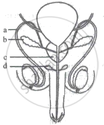 Identify the labels (a, b, c, and d) in the given diagram of the male reproductive system.