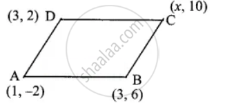If (1, −2), (3, 6), (x, 10) and (3, 2) are the vertices of the parallelogram taken in order, then the value of x is