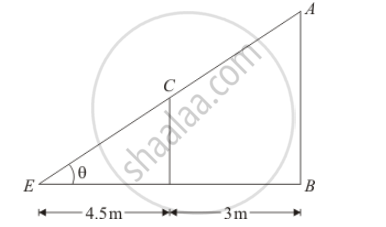 In `ΔABE, tan θ= (AB)/(BE)=(AB)/(4.5+3)=(AB)/7.5` ..........(2)