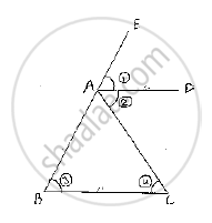 Let ∠EAD= (1),∠DAC = (2),∠ABC = (3) and ∠ACB =(4)