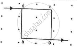 A current of 2 A enters at the corner d of a square frame abcd of side 20 cm and leaves at the opposite corner b. A magnetic field B = 0.1 T exists in the space in a direction perpendicular to the plane of the frame, as shown in the figure. Find the magnitude and direction of the magnetic forces on the four sides of the frame.