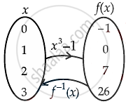 If f(x) = x3 – 1 and domain of f = {0, 1, 2, 3}, then domain of f–1 is {–1, 0, 7, 26}.