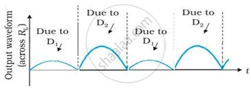 If the centre tapping is shifted towards Diode D1 as shown in the diagram, draw the output waveform of the given circuit. - Physics