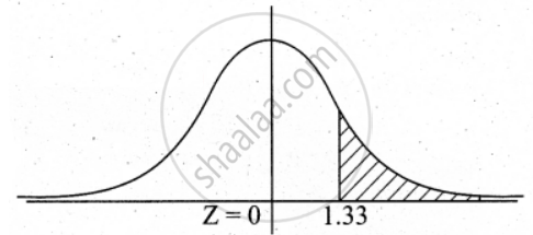 z = `(72 - 68)/3 = 4/3` = 1.33