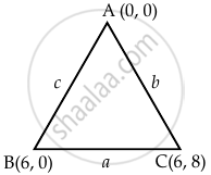∴ Incentre = `((8(0) + 10(6) + 6(6))/(8 + 10 + 6), (8(0) + 10(0) + 6(8))/(8 + 10 + 6))`