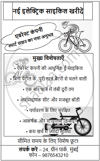इलेक्ट्रिक साइकिल बनाने वाली कंपनी ‘एबरेस्ट’ की ओर से अपने उत्पाद की जानकारी देनेतथा बिक्री बढ़ाने हेतु एक आकर्षक विज्ञापन तैयार कीजिए।