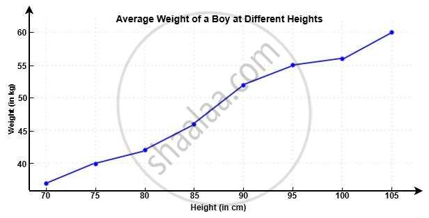 Here is the broken line graph showing the relationship between a boy’s height (in cm) and his average weight (in kg).