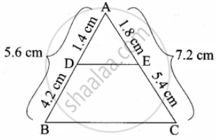 AB = 5.6 cm, AD = 1.4 cm, AC = 7.2 cm and AE = 1.8 cm.