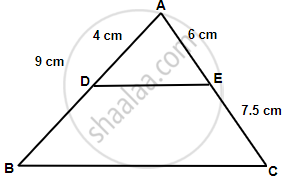 - AB = 9 cm, AD = 4 cm, AE = 6 cm and EC = 7.5 cm.