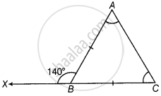In ∆ABC, if ∠A = ∠C, and exterior angle ABX = 140°, then find the angles of the triangle.