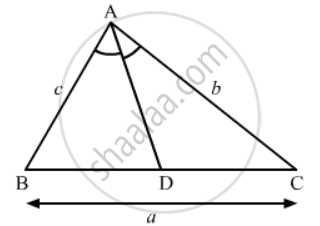 Given: In Δ ABC ray AD bisects angle A and intersects BC in D, If `BC = a, AC=b` and `AB =c`