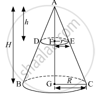 \[ \Rightarrow \frac{h}{H} = \frac{r}{R} . . . . . \left( 1 \right)\]