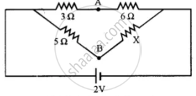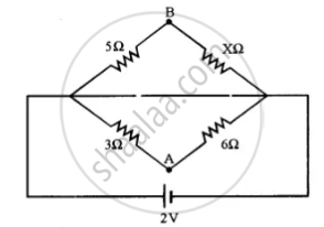 In Figure 3 given below, find the value of resistance x for which points A and B are at the same potential: