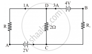 Hence, current through 2Ω is 2A from D to C. Applying Kirchhoff’s law to the loop containing R1, 2Ω and 4V.
