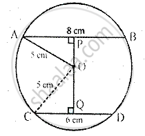 OP ⊥ AB and OQ ⊥ CD, AB = 8 cm and CD = 6 cm.