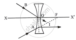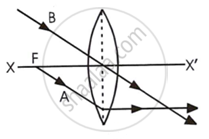 In the diagram below, XX’ represents the principal axis, O the optical centre and F the focus of the lens. Complete the path of rays A and B as they emerge out of the lens.