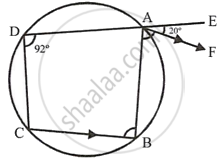 In the given figure, ABCD is a cyclic quadrilateral. AF is drawn parallel to CB and DA is produced to point E. If ∠ADC = 92°, ∠FAE = 20°; determine ∠BCD. Give reason in support of your answer.