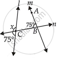 For l and m to be parallel to each other, the corresponding angles (∠ABC and ∠x) should be equal. However, here their measures are 75° and 105°, respectively. Hence, the lines l and m are not parallel to each other.