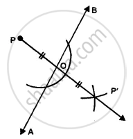 In the following case, construct a point that is symmetric to the given point P with respect to the given line AB.