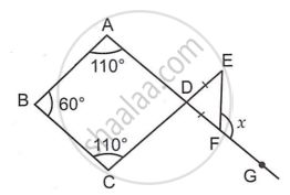 In the quadrilateral ABCD, ∠A = ∠C = 110°, ∠B = 60°. DE = DF. The measure of angle x is ______.