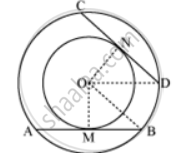 Consider two concentric circles with centres at O. Let AB and CD be two chords of the outer circle which touch the inner circle at the points M and N respectively.
