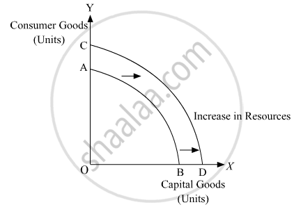A production possibility curve is drawn with a given endowment of resources and a given technology level. Accordingly, a PPF or PPC will shift away from the origin or outwards under the following two conditions: