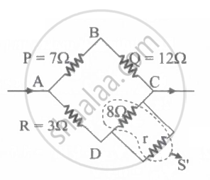 In Wheatstone's bridge P = 7 ohm, Q = 12 ohm, R = 3 ohm and S = 8 ohm. How much resistance must be put in parallel to the resistance S to balance the bridge?