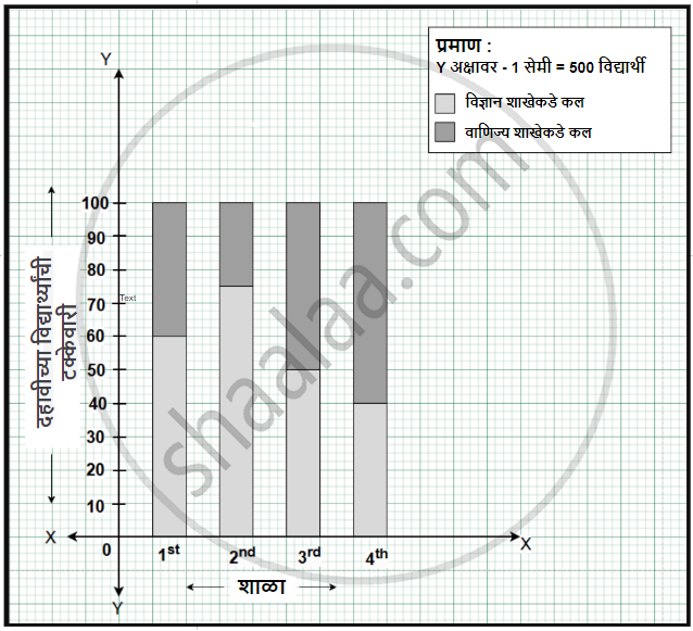 | विज्ञान शाखेकडे कल असलेल्या विद्यार्थ्यांची टक्केवारी | `90/150 xx 100 = 60` | `60/80 xx 100 =75` | `25/50 xx 100 = 50` | `16/40 xx 100 = 40` |