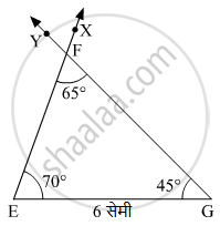 ∆EFG मध्ये l(EG) = 6 सेमी, m∠F = 65°, m∠G = 45°