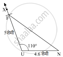 ∆FUN मध्ये l(FU) = 5 सेमी, l(UN) = 4.6 सेमी, m∠U = 110°