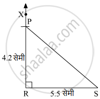 ∆PRS मध्ये l(RS) = 5.5 cm, l(RP) = 4.2 cm, m ∠R = 90°
