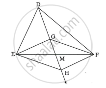 खालील आकृती मध्ये, बिंदू G हा ΔDEF चा मध्यगा संपात आहे. किरण DG वर बिंदू H असा घ्या, की D-G-H आणि DG = GH, तर सिद्ध करा `square`GEHF समांतरभुज आहे.