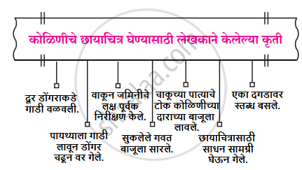 खालील आकृती पूर्ण करा. कोळिणीचे छायाचित्र घेण्यासाठी लेखकाने केलेल्या कृती - Marathi [मराठी]