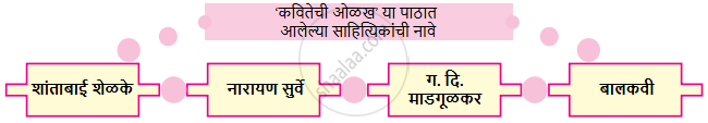खालील आकृती पूर्ण करा. ‘कवितेची ओळख’ या पाठात आलेल्या साहित्यिकांची नावे - Marathi [मराठी]