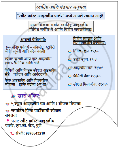 खालील मुद्द्यांच्या आधारे आइस्क्रीमच्या दुकानाची आकर्षक जाहिरात तयार करा.
