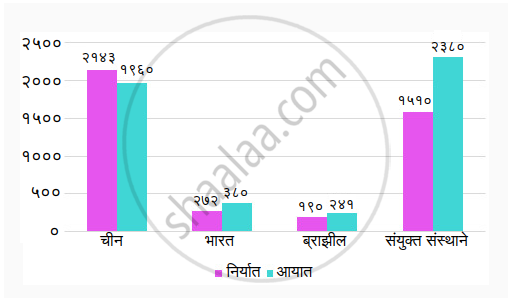 दिलेल्या माहिती आणि स्तंभालेखानुसार, भारत, ब्राझील आणि संयुक्त संस्थाने हे अनुकूल नसलेले व्यापार संतुलित करीत आहेत, कारण आयातीचे मूल्य निर्यातीच्या मूल्यापेक्षा जास्त आहे. उलट, चीन हा अनुकूल व्यापार संतुलित करीत आहे, कारण निर्यातीचे मूल्य आयातीच्या मूल्यापेक्षा जास्त आहे.