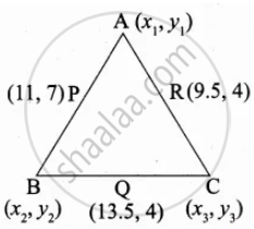 Let P(11, 7), Q(13.5, 4) and R(9.5, 4) be the midpoints of the sides AB, BC and AC respectively of ∆ABC. Find the coordinates of the vertices A, B and C. Hence find the area of ∆ABC and compare this with area of ∆PQR.