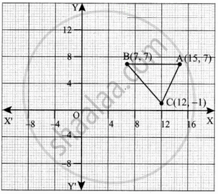 The vertices of a ΔABC are A(7, 7), B(15, 7) and C(12, 1)