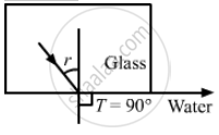 \[\frac{\sin \theta_c}{\sin r} = \frac{\mu_w}{\mu_g}\](since the light is passing from glass to water)