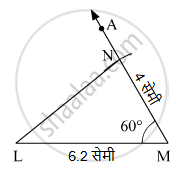 ∆LMN मध्ये l(LM) = 6.2 सेमी, m∠LMN = 60°, l(MN) = 4 सेमी तर ∆LMN काढा.