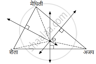मैथिली, शैला व अजय हे तिघे एकां शहरात वेगवेगळ्या ठिकाणी राहत असून त्यांच्या घरांपासून समान अंतरावर खेळण्यांचे एक दुकान आहे. हे आकृतीच्या साहाय्याने दर्शवण्यासाठी कोणती भौमितिक रचना वापरावी? स्पष्टीकरण द्या.
