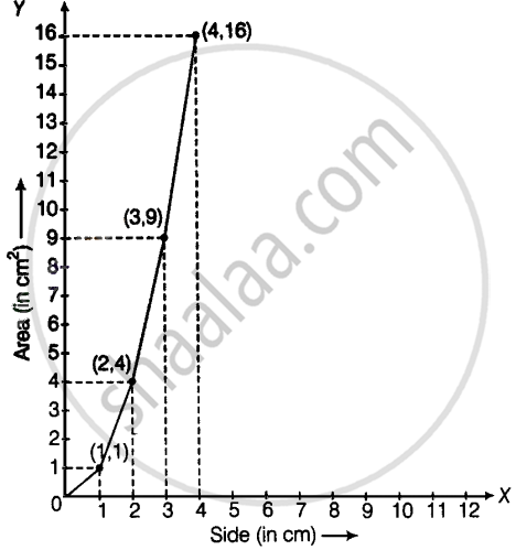 | Area (in cm2) | 1 | 4 | 9 | 16 |