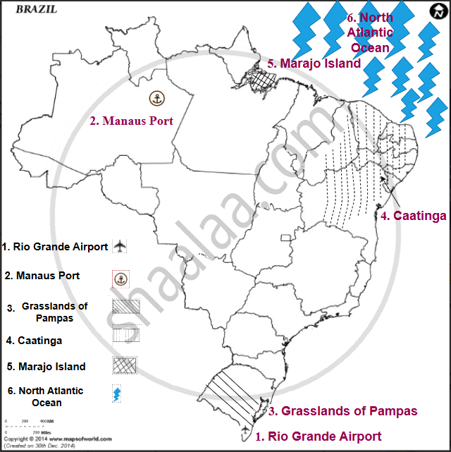 Mark the following in the outline map of Brazil supplied to you; write the names and give an index: