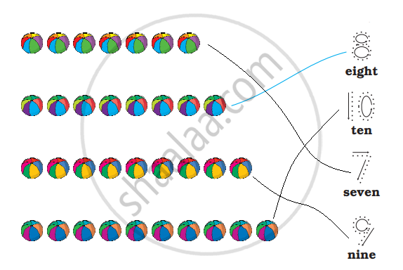 Match the balls with their numbers. Now trace the numbers.