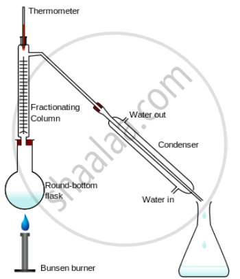 The technique of Separation – The mixture of two miscible liquids e.g. alcohol and water have different boiling points is taken in the distillation flask and heated slowly.